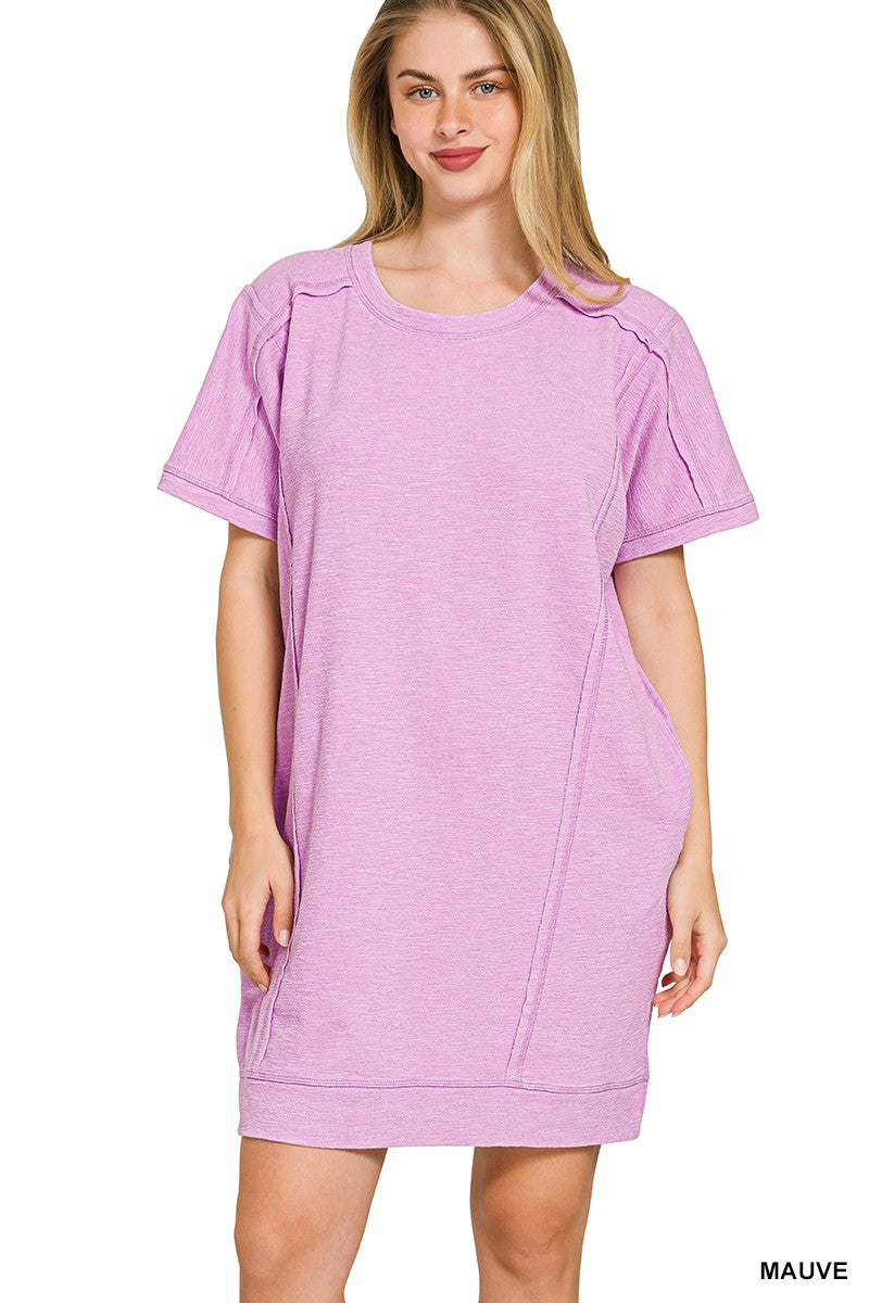 Zenana Washed Ribbed Cuffed Short Sleeve Round Neck Top