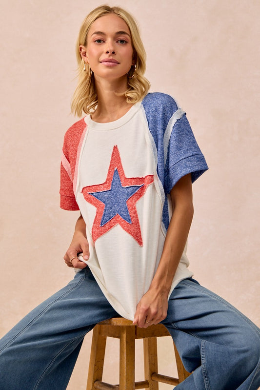 BiBi Contrast French Terry Cut Edge Detail Fourth Of July Theme T-Shirt