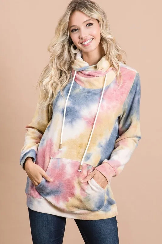 BiBi Brushed Tie Dye Overlapped Turtle Neck Sweatshirt