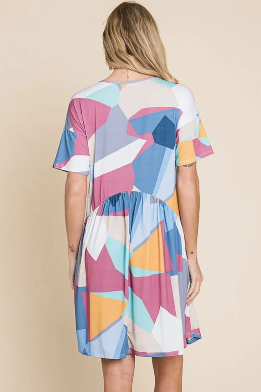 BOMBOM Ruched Color Block Short Sleeve Dress