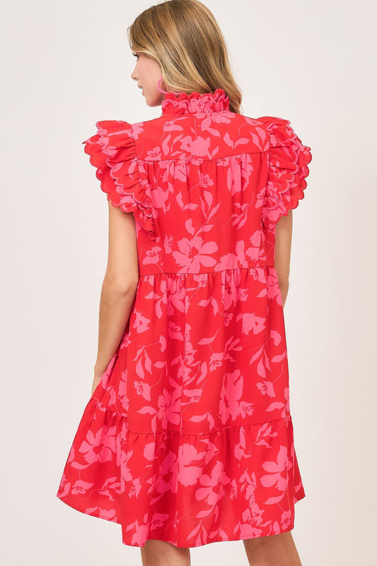 Davi & Dani Floral Scalloped Cutout Back Mini Dress