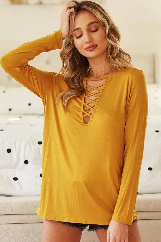 BiBi Jersey Knit Top with Criss Cross Caged Neck Detail